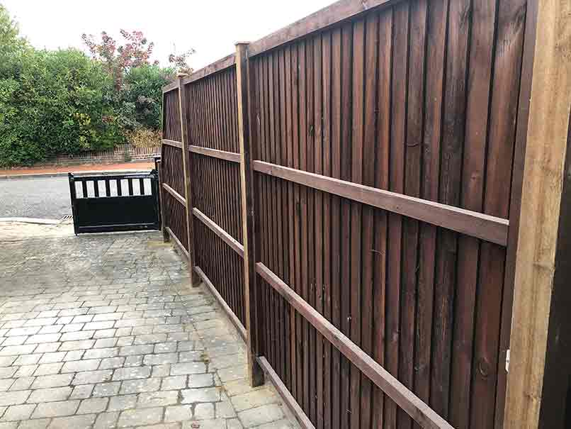 Built to give more privacy and aesthetic appeal to the front garden, the step-down near the gate for safety to ensure cars reversing out are seen and to increase the field of view for the driver. At customer request we added trellises to allow climbing plants to grow.