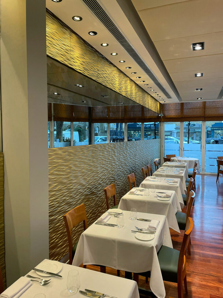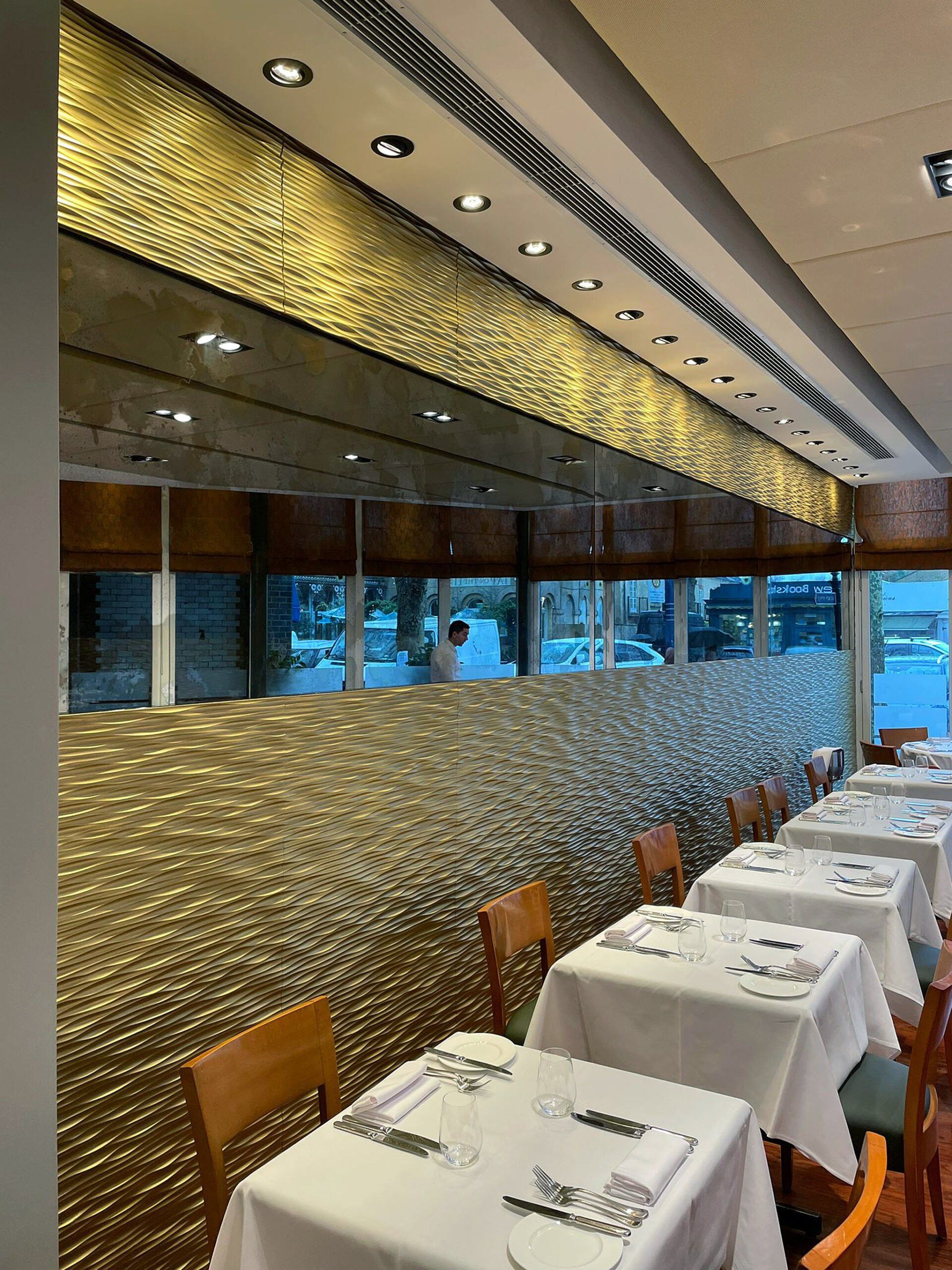 stylish antique decorative mirror, adding a classy finishing touch to a restaurant in Kew.