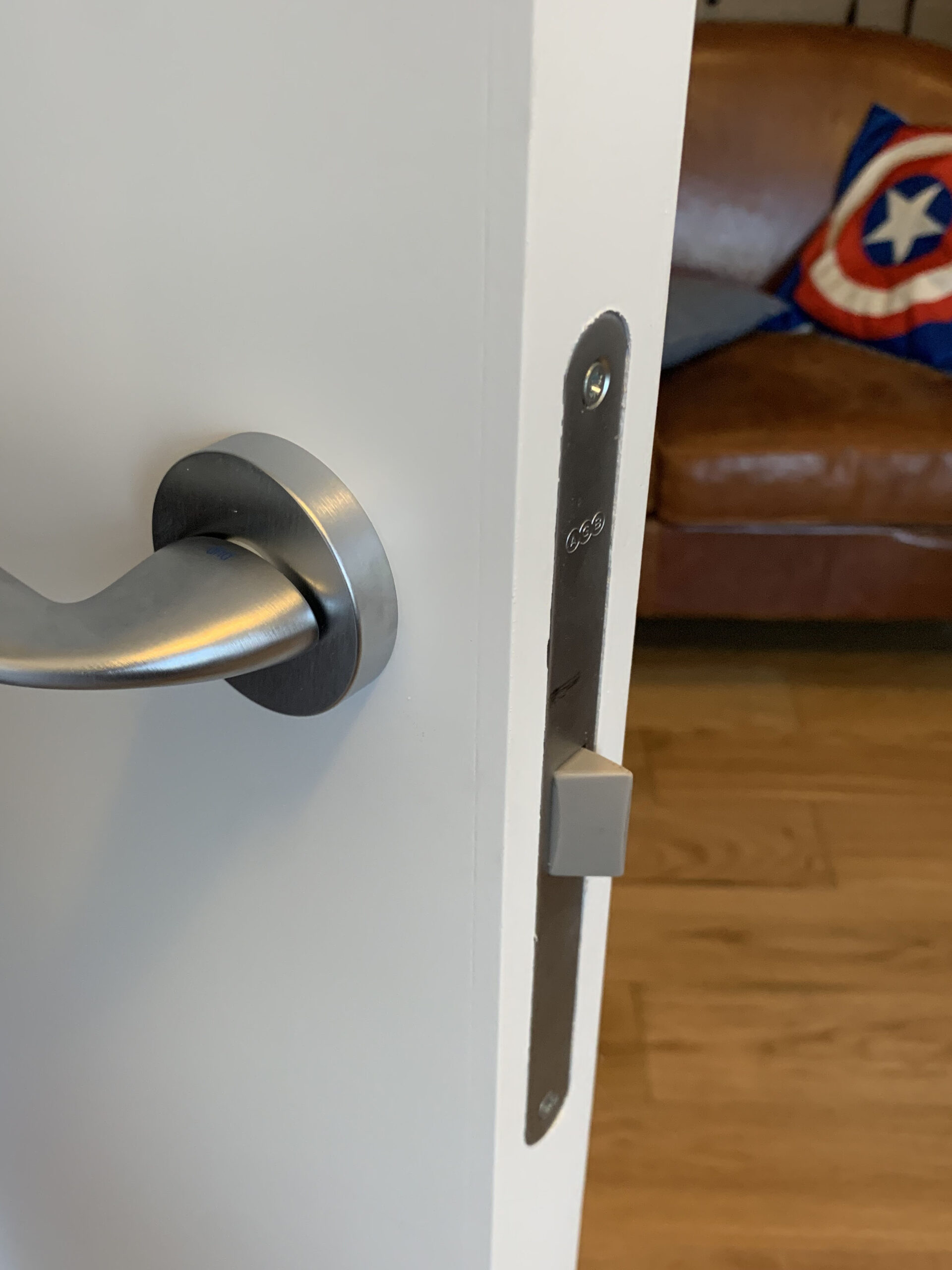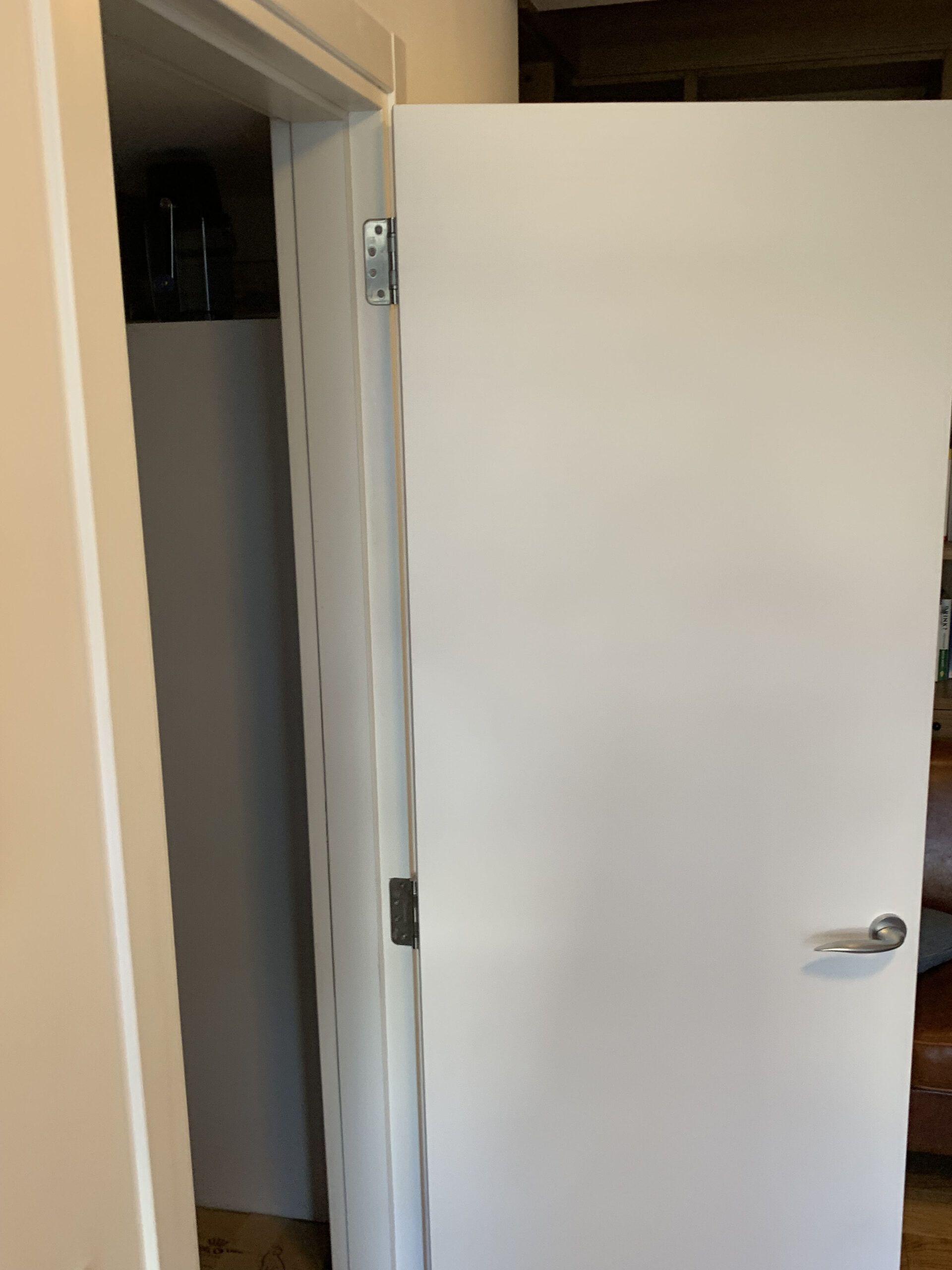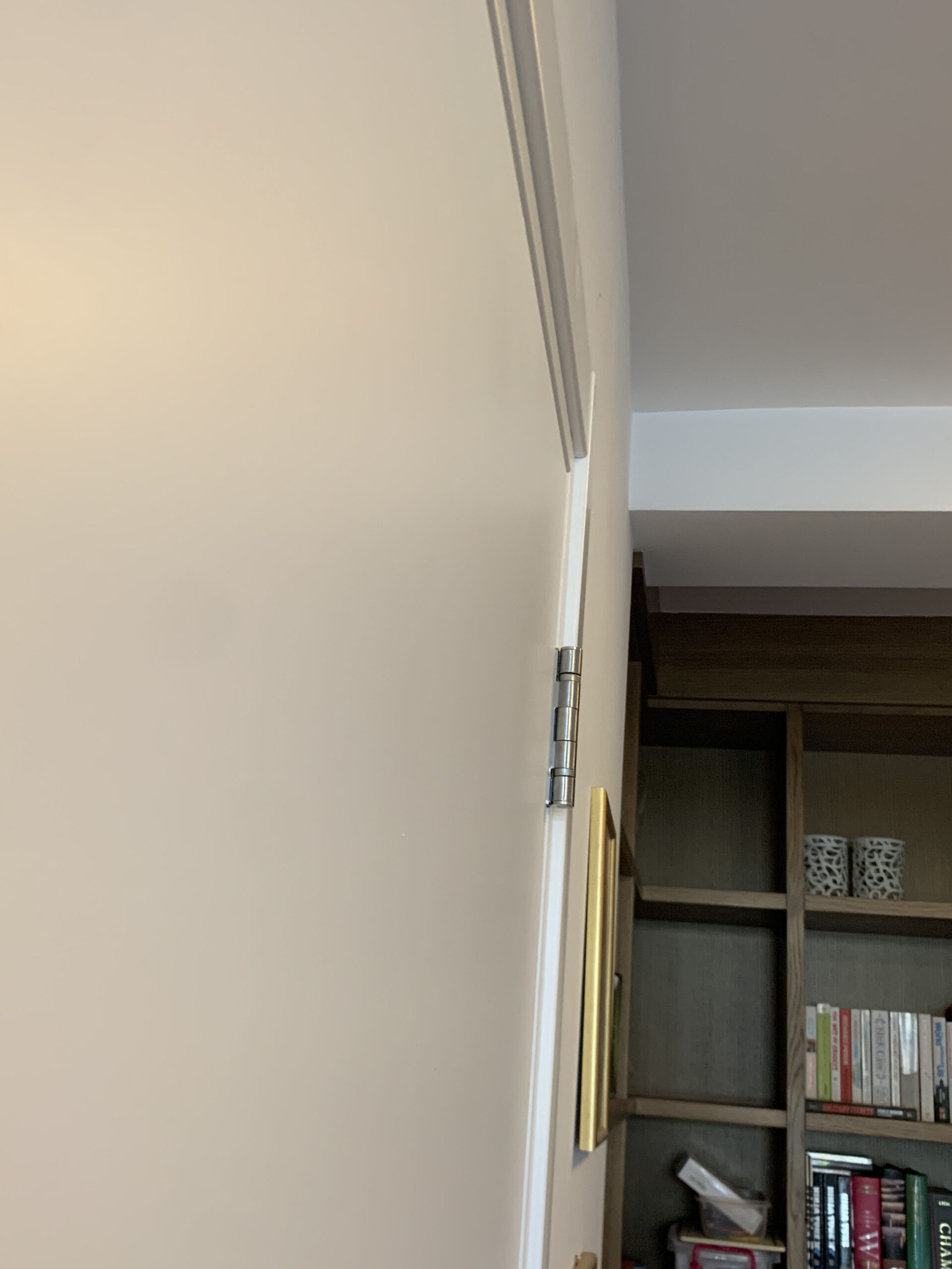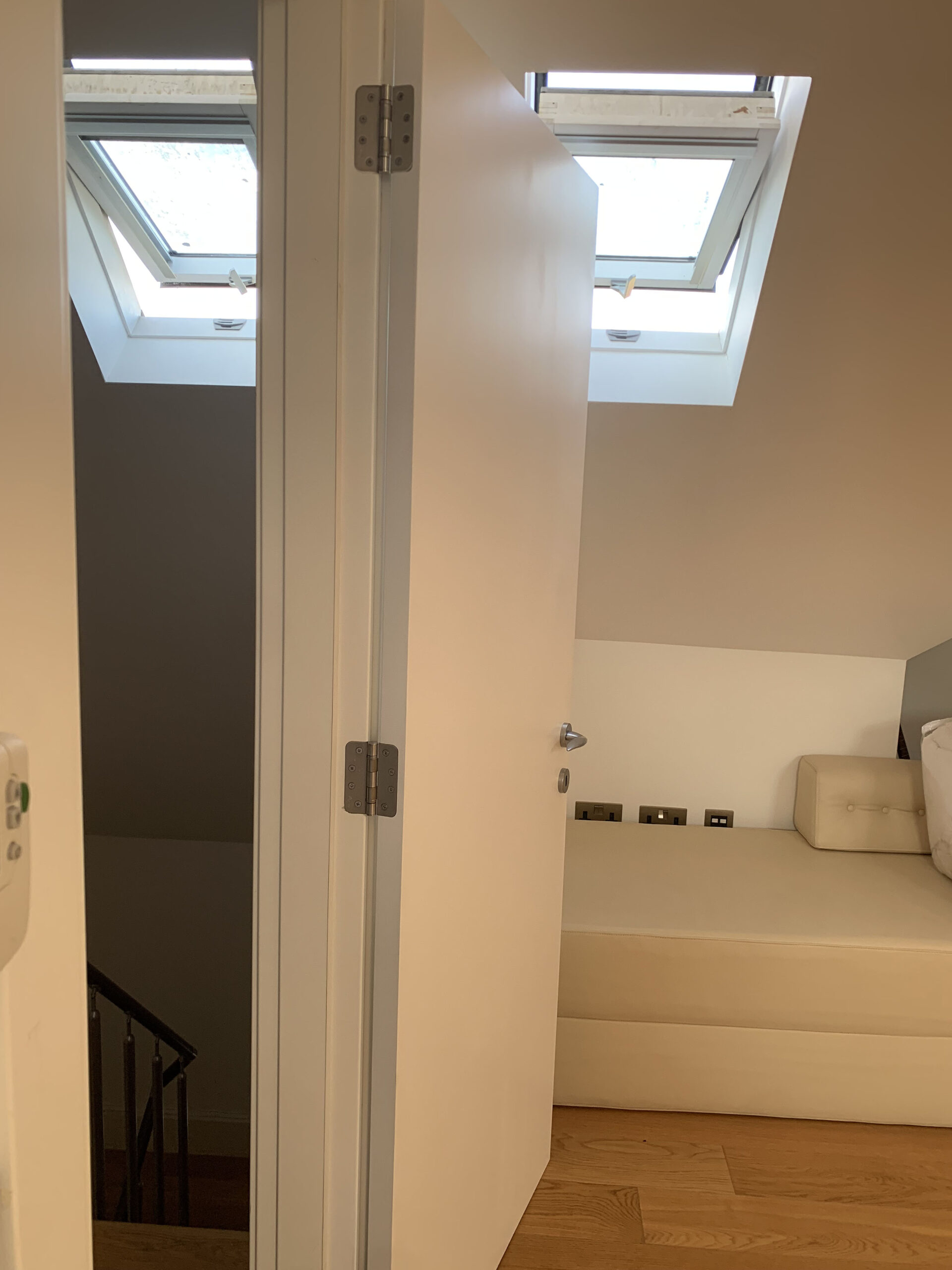 replacement modern style doors with new brushed stainless hinges, sprayed in a matt white.