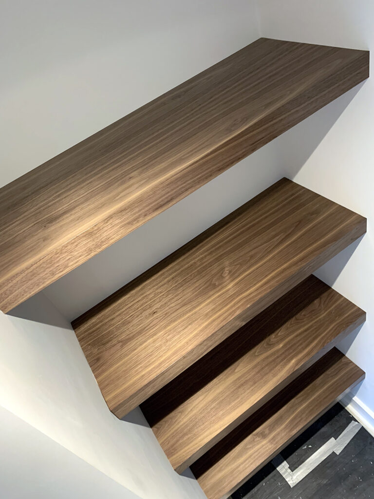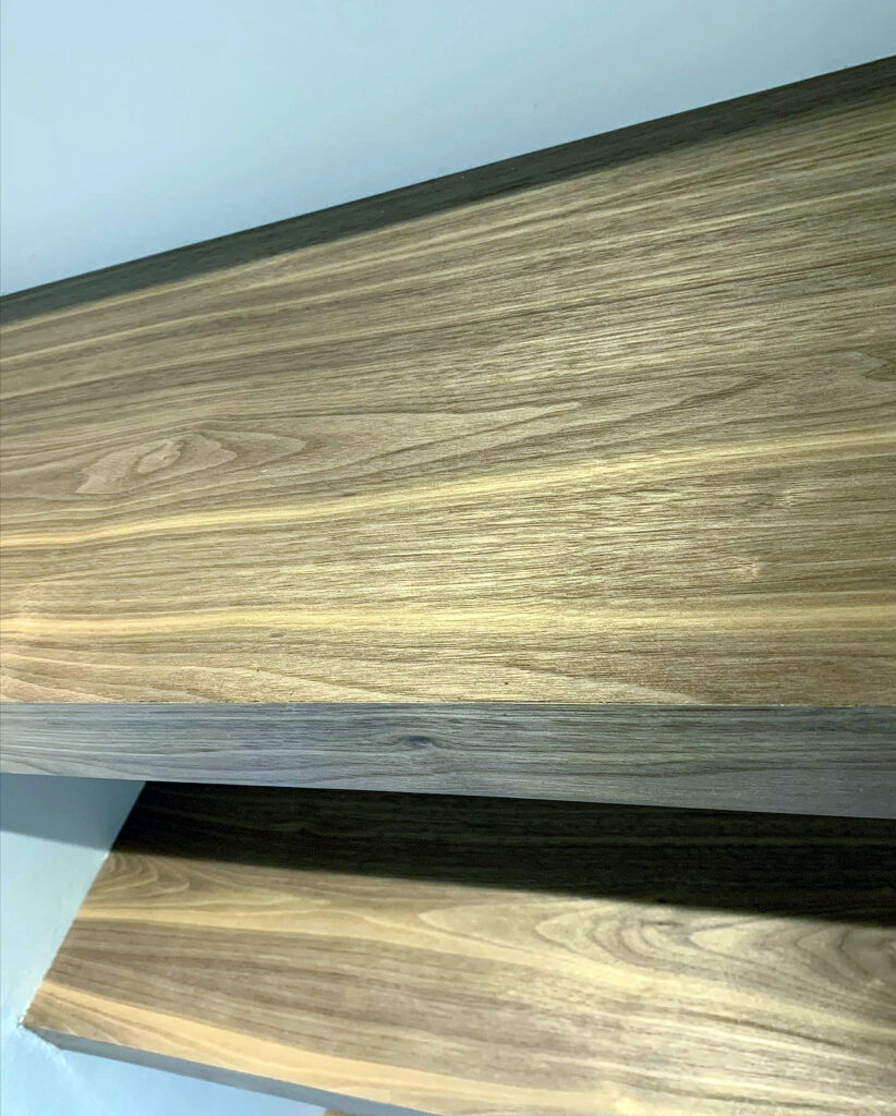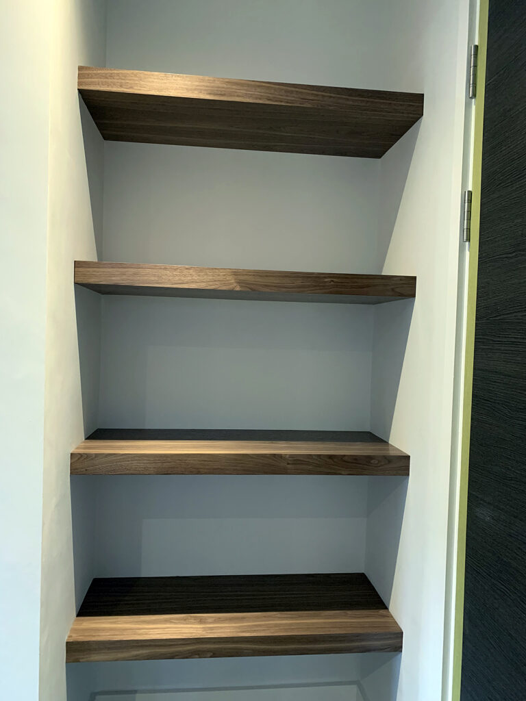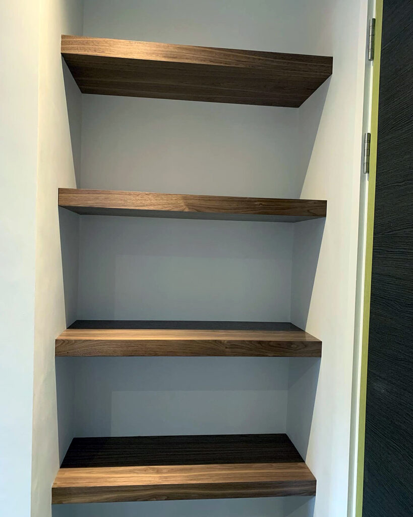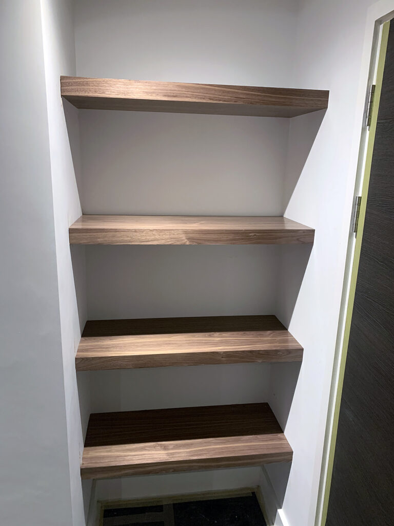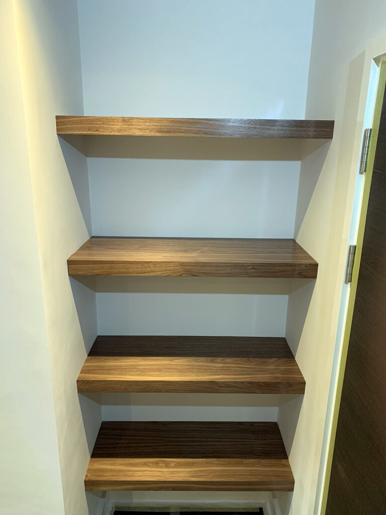 Walnut floating shelves